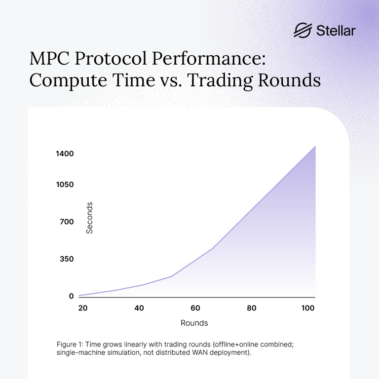 We built a prototype on Stellar using the MP-SPDZ framework [2], implementing a matching protocol for periodic auctions. MP-SPDZ offers a Python-like programming model that compiles down to MPC protocols, making it more accessible than SCALE-MAMBA (though the latter has experimental Rust support via WASM compilation).
