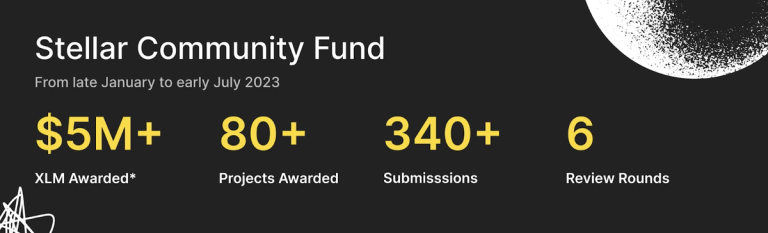The first half of 2023 was focused primarily on just this: attracting builders and entrepreneurs to experiment with Soroban’s preview releases and provide feedback through the $100M Soroban Adoption Fund. The fund is an umbrella for several programs including Fast, Cheap, and Out of Control (FCA00C), Sorobanathon, and the Stellar Community Fund (SCF): an open-application awards program to support teams building on Stellar and Soroban with up to $150,000 worth of XLM awarded for three-month long projects. In the past 6 months, SCF alone has processed: