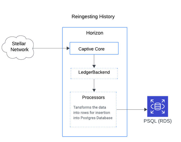However, there are scenarios where you may want to retrieve and process older ledger data outside this retention window. Horizon supports this through a process called reingestion, which fetches and reprocesses historical Stellar ledger data.