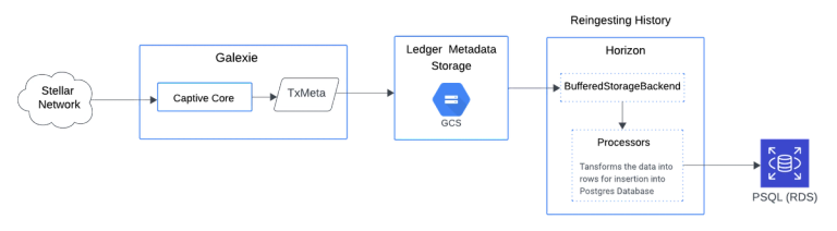 To accommodate the new architecture, the Horizon db reingest command now supports reingestion from the datastore. You invoke it similarly to how you would for Captive Core, but with additional configuration for the datastore, such as specifying the bucket address and data schema. For command and configuration details on using CDP for reingestion, refer to the reingestion guide here.