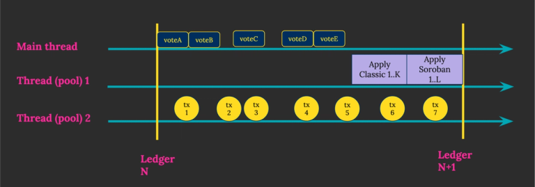 To support this evolution, SDF began a series of major upgrades to Stellar Core last year aimed at enhancing scalability and paving the way for higher throughput and lower block times. We designed these changes to take advantage of spare CPU capacity already present on most modern computers. The best part: no hardware upgrades are needed—Stellar Core simply makes smarter use of existing CPU cores.