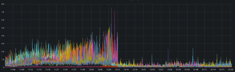 Deploying v22.1.0 yielded a sharp drop in main thread pressure – in other words, the amount of work main thread has in its backlog at any given time has gone down significantly. Figure 4 illustrates the drop, as observed on SDF’s validators as well as Horizon instances.