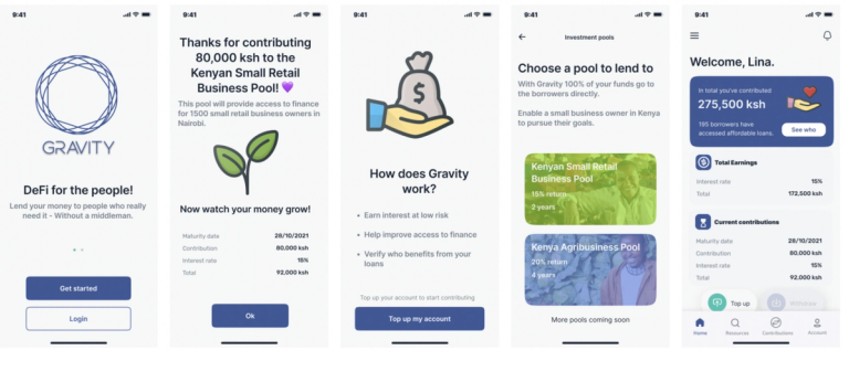 Gravity empowers individuals like merchants, farmers, and gig-workers to create portable and persistent digital identities for financial access, in addition to providing an embedded financing solution for supply chains. Merchants in Nairobi use Gravity to bring together data from their suppliers, credit scores, and verified identity. They can then share this with a lender to access earmarked credit for stock purchases.