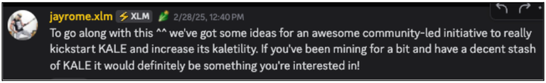 The ecosystem around KALE continued to expand following the upgrade. A dedicated Discord channel opened in Stellar Global, and on March 6, community member jayrome, along with other ecosystem members, launched a KALE liquidity pool on StellarX. To encourage participation, jayrome rewarded those who donated to the pool with special Discord roles: Seed Sower (a donation of 20-500 KALE), Farm Hand (a donation of 500-4,000 KALE), and Master Farmer (a donation of 4,000+ KALE). Soon after, Soroswap listed KALE, adding even more utility and activity hit a new high: on March 25, KALE crossed 300,000 invocations in a single day.