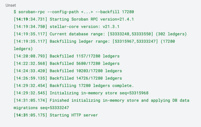 Si has estado jugueteando con la plataforma de contrato inteligente Stellar, probablemente también hayas intentado ejecutar Stellar RPC para que puedas ejecutar todo localmente (a menos que estés usando uno de nuestros proveedores de RPC del ecosistema!). Probablemente también te hayas encontrado con una de sus decisiones de diseño intencionales: es una puerta de enlace en vivo que no se preocupa mucho por los datos históricos. Esto es lo que lo hace tan ligero y fácil de ejecutar. Proporciona pequeñas ventanas de historia para transacciones y eventos, pero estas son "mirando hacia adelante": si configuras RPC para almacenar 24 horas de historial de libro mayor, no pasará mucho tiempo tratando de rellenar las últimas 24 horas, sino que simplemente mantendrá las siguientes 24 horas en la base de datos y luego la recortará de manera continua. El objetivo es que avances con tu proyecto lo más rápido posible en lugar de la filosofía de Horizon que está más centrada en la gestión de la historia profunda.