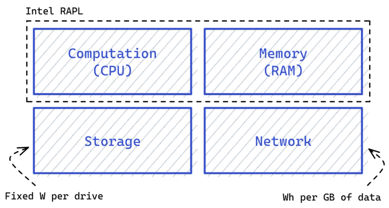 El uso de electricidad de CPU y RAM se estimó utilizando mediciones basadas en software usando la interfaz Intel RAPL, con el uso de electricidad muestreado para intervalos de 1 segundo cada 0-5 segundos al azar. Los retrasos aleatorios se agregaron para distribuir el muestreo a través de diferentes fases de una ronda de consenso.