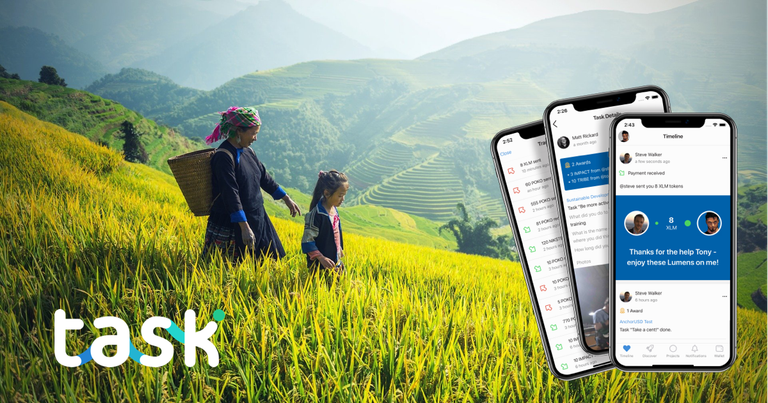 Task conecta organizaciones con equipos remotos, rastrea la actividad en la blockchain de Stellar, procesa pagos entre usuarios y permite el intercambio de tokens por recompensas localmente relevantes.