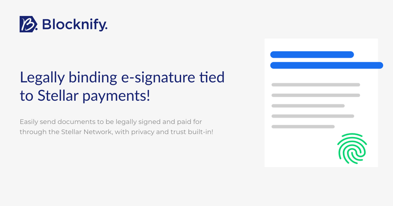 Blocknify permite a los usuarios agregar fácilmente una firma electrónica legalmente vinculante a cualquier transacción de Stellar con privacidad y confianza integradas.