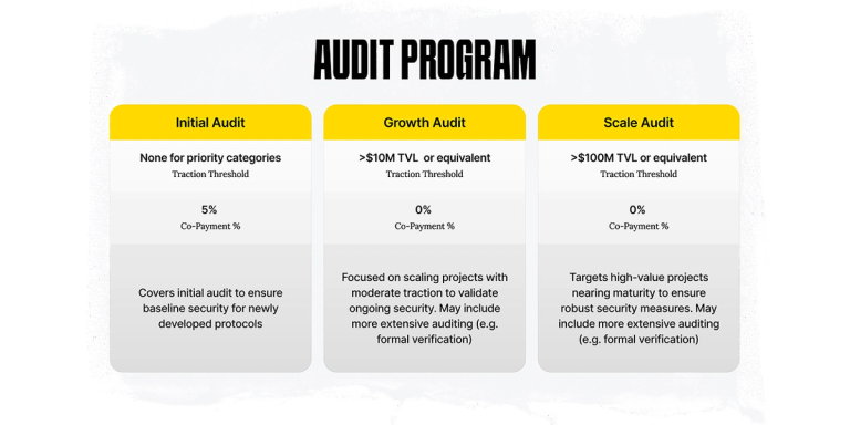 Projects will need to contribute 5% of the audit cost upfront, but this co-payment amount is eligible for a full refund, provided that critical, high, and medium vulnerabilities identified are swiftly remediated within 20 business days of receiving the initial audit report.