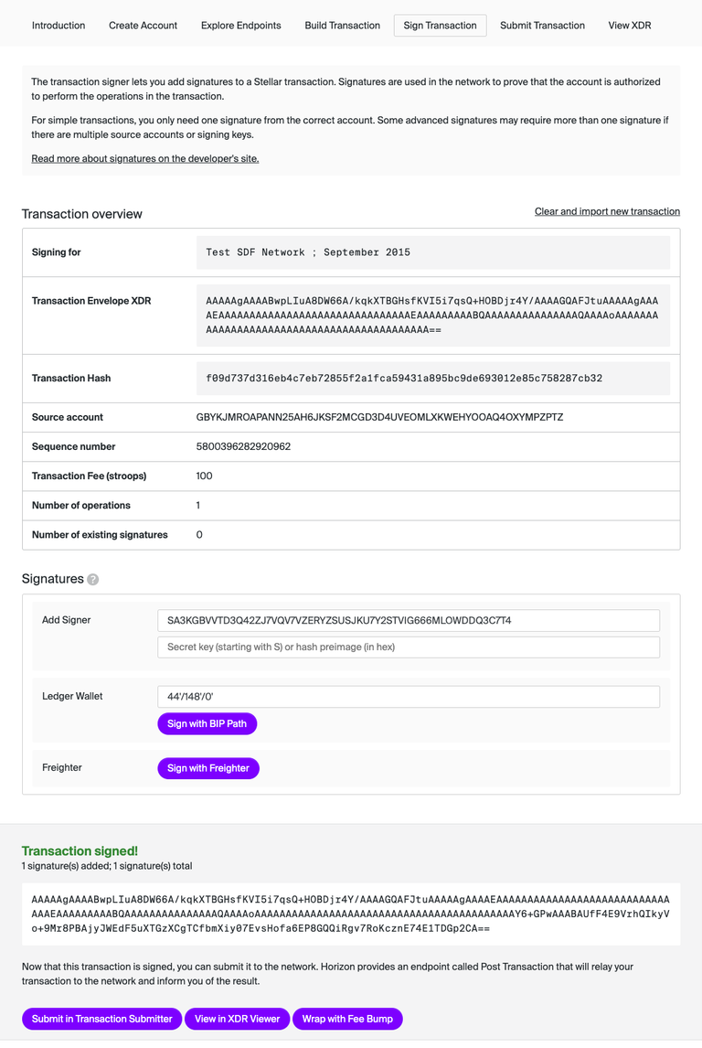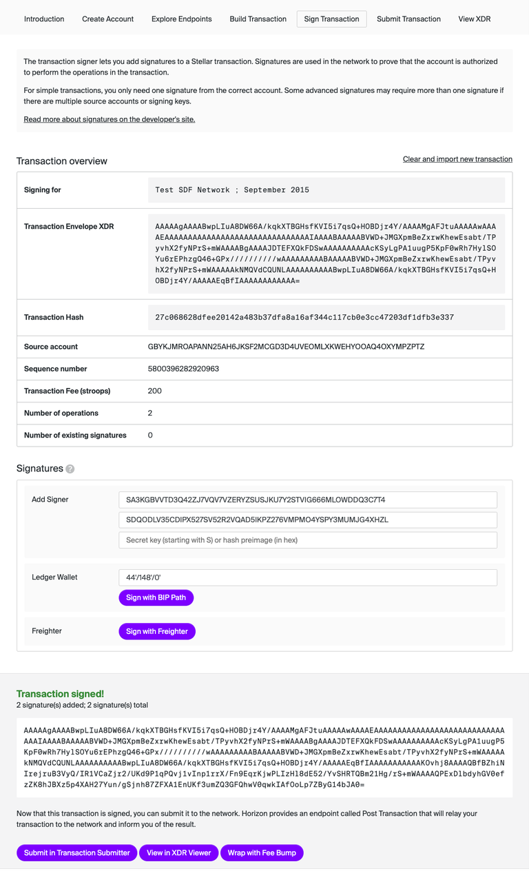 Next, we’ll sign this transaction with the Issuing account's private key and submit it to the network, completing the Issuing account setup process.