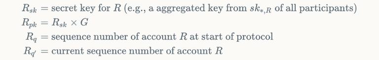 While this specification describes an escrow account that uses a single aggregated public key from the private keys of the participants, an alternative (used by the example implementation described below) would be to use an N-of-N multisignature account, with one key for each of the participants.